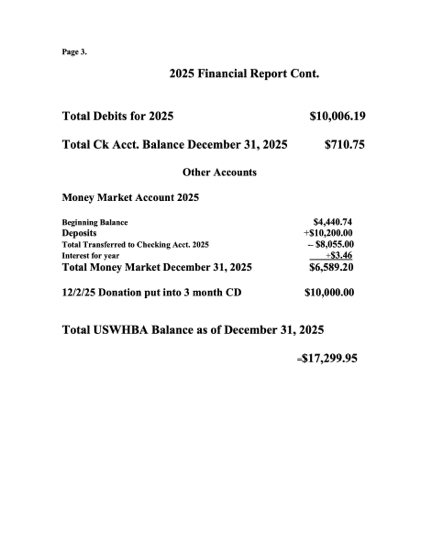 USWHBA Inc. is a recognized 501 (c) (3) organization.